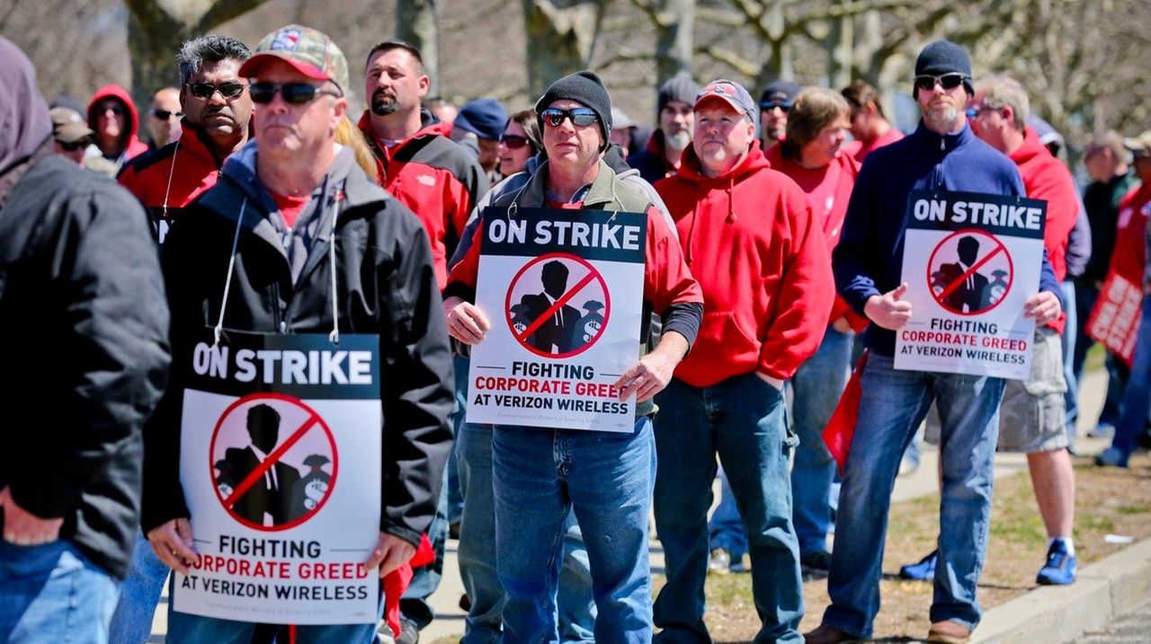 Verizon workers on strike protest outside Smith Haven Mall Newsday